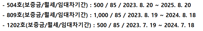 - 809호 계약기간: 23.08.19 ~ 24.08.18