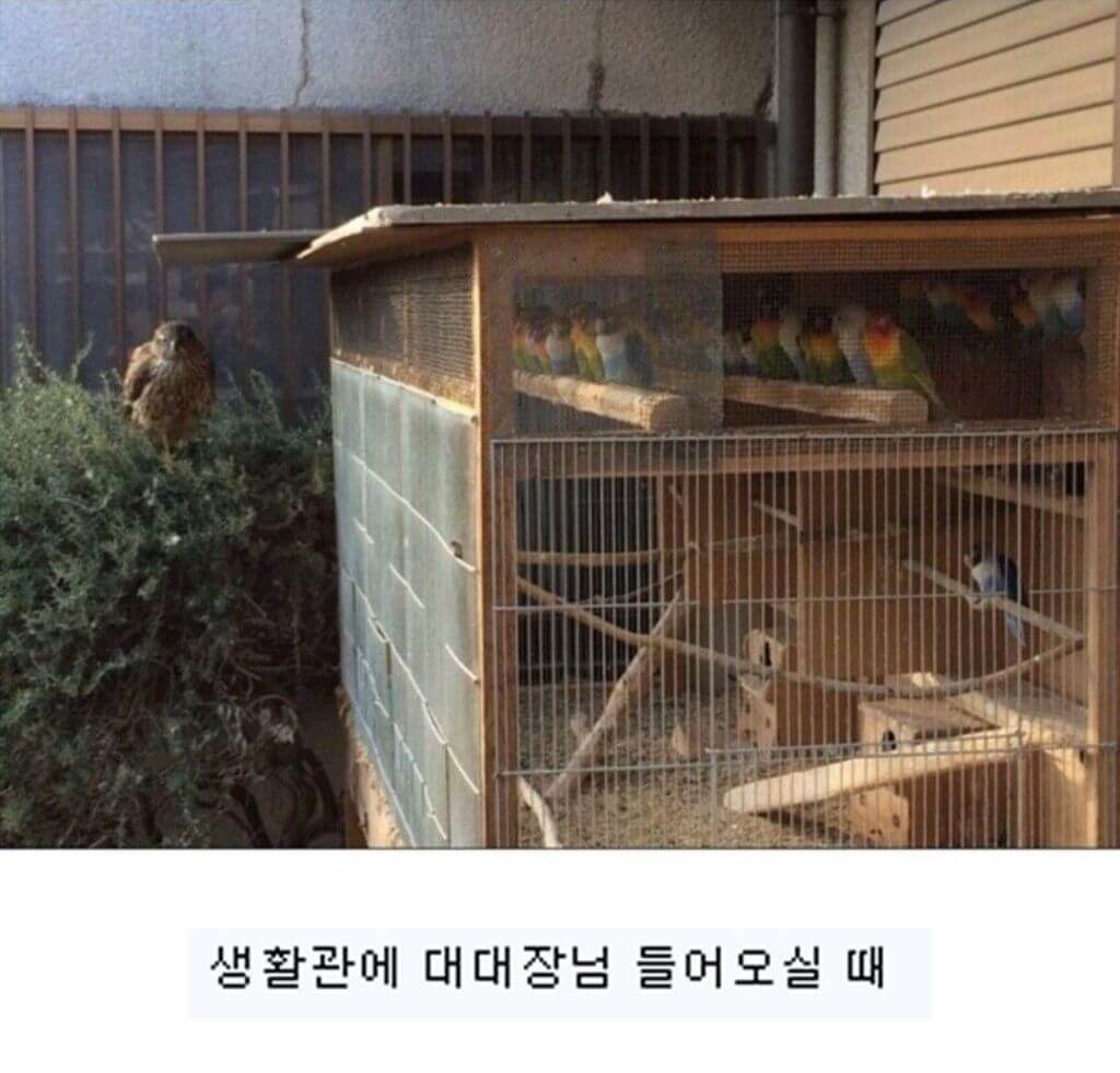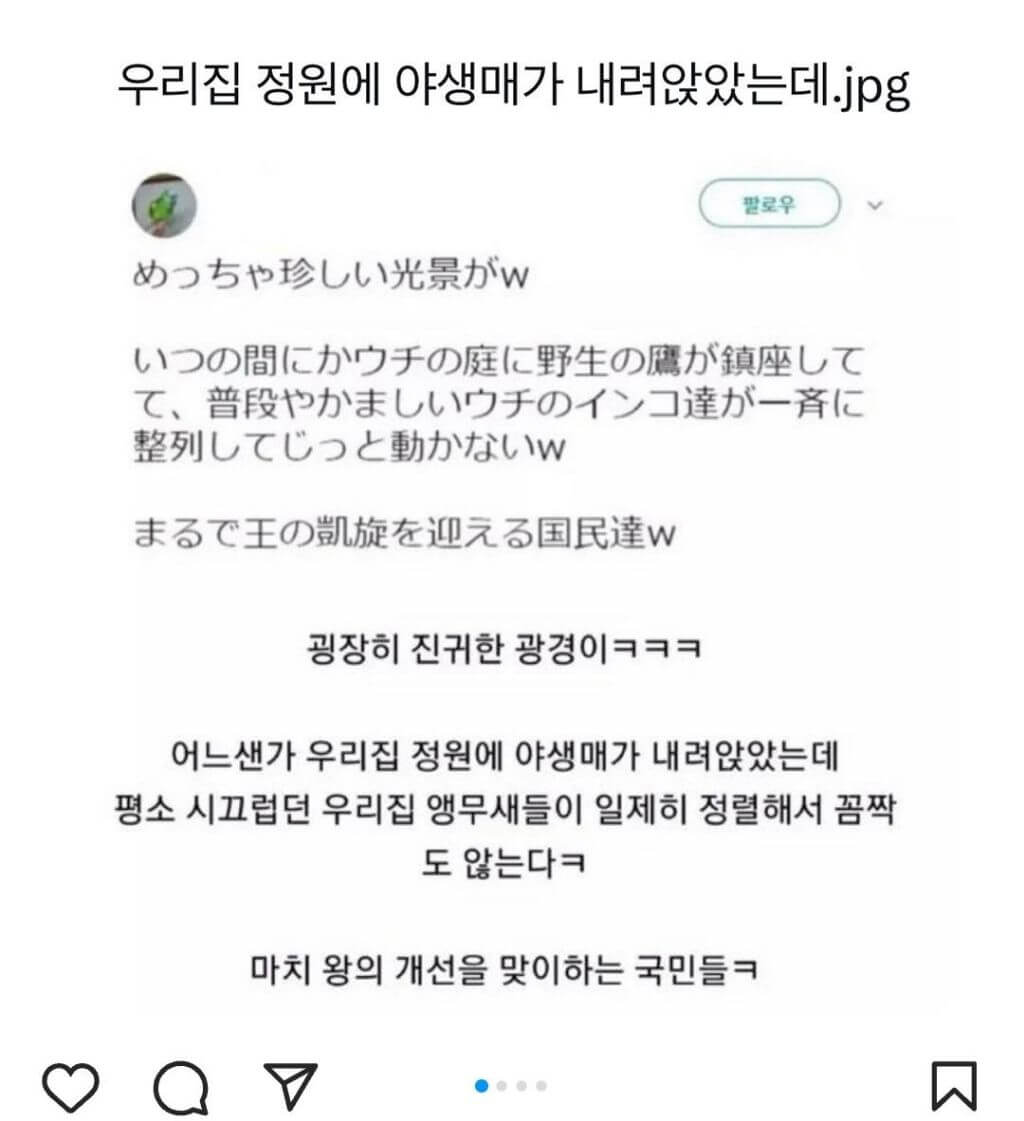 우리집 정원에 야생매가 내려앉았는데