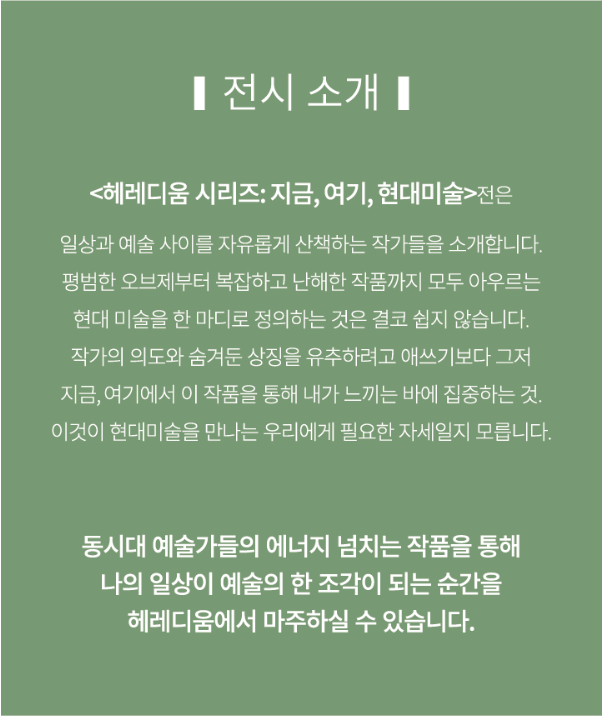 딱 한달동안 진행되는 전시! 멋진 작가들의 작품을 볼 수 있는 멋진 전시라서 그럴까요. 전시기간이 한달이라 무척 짧네요.