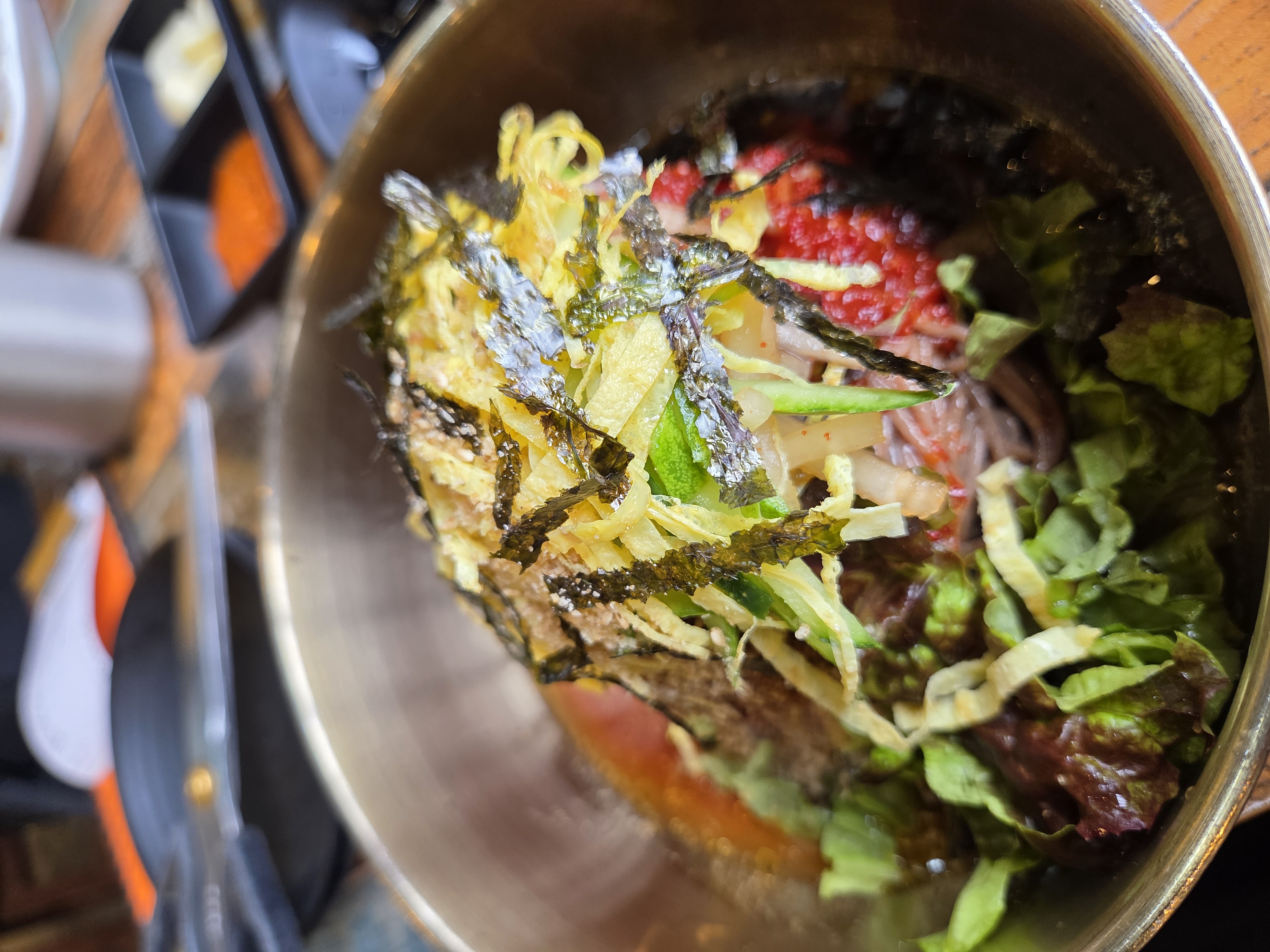 비빔막국수는 보기만 해도 입맛을 돋우는 비주얼을 자랑했습니다.